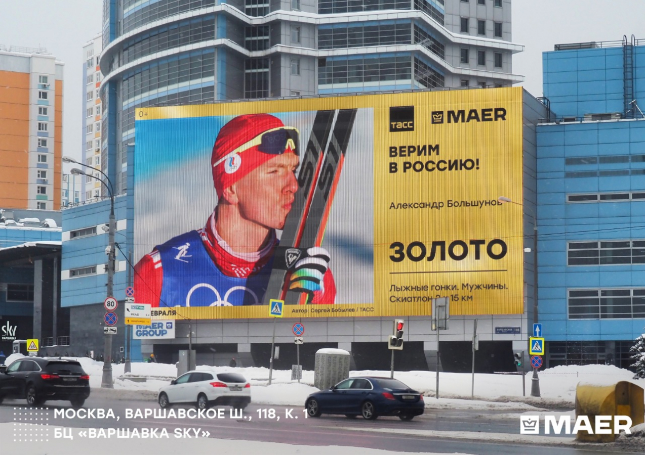 За успехами российской сборной в Maer следит оперативная группа, в которую входят дизайнеры, юристы и PR-специалисты. Как только становится известно об очередной медали сборной России, фотографии призёров появляются на всех цифровых экранах холдинга. В масштабной акции задействовано 20 медиафасадов и вся сеть цифровых суперсайтов компании. Олимпийская акция проводится в Москве, Нижнем Новгороде, Екатеринбурге, Новосибирске, Челябинске, Уфе, Тюмени, Перми, Самаре, Волгограде.