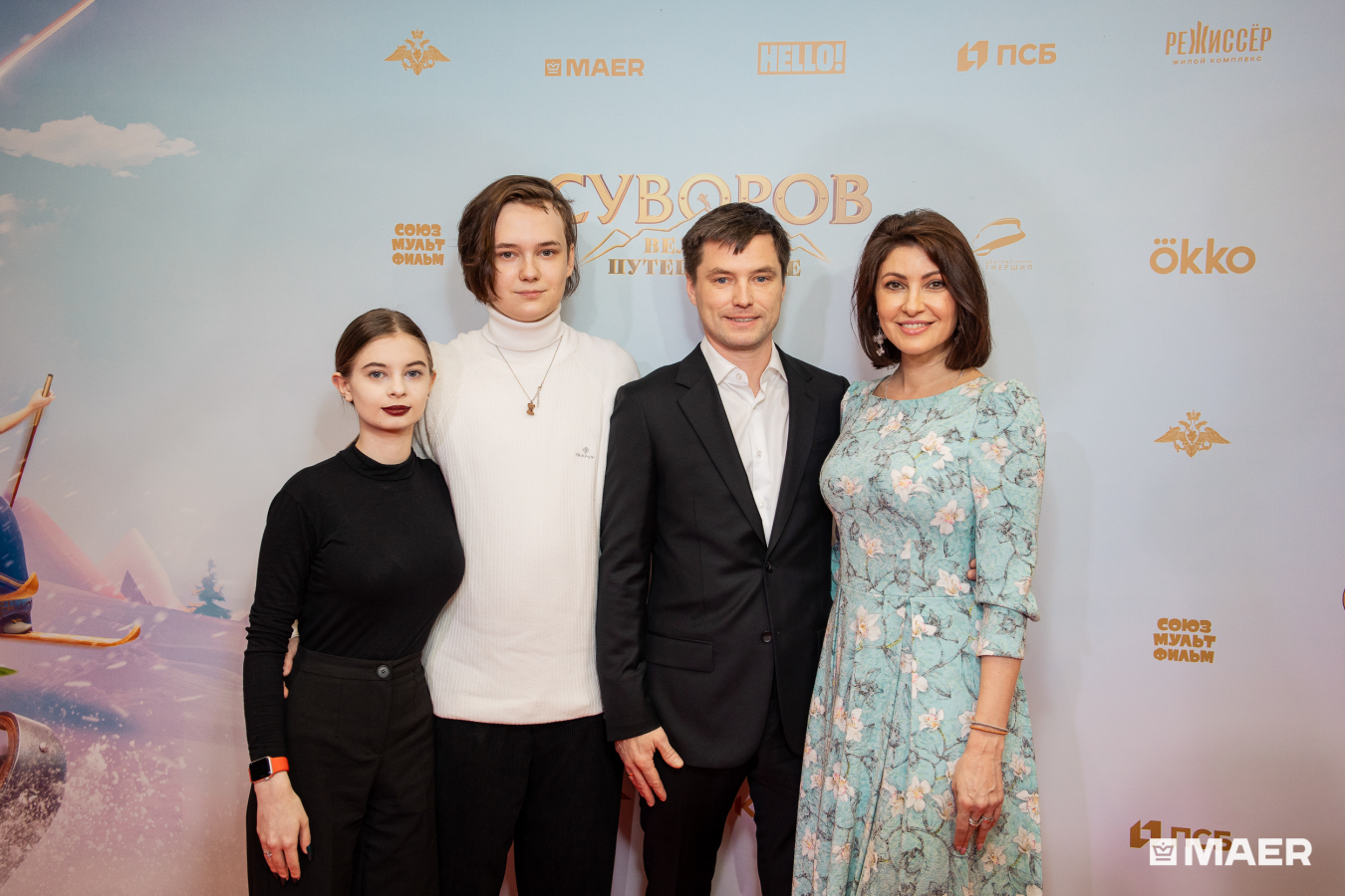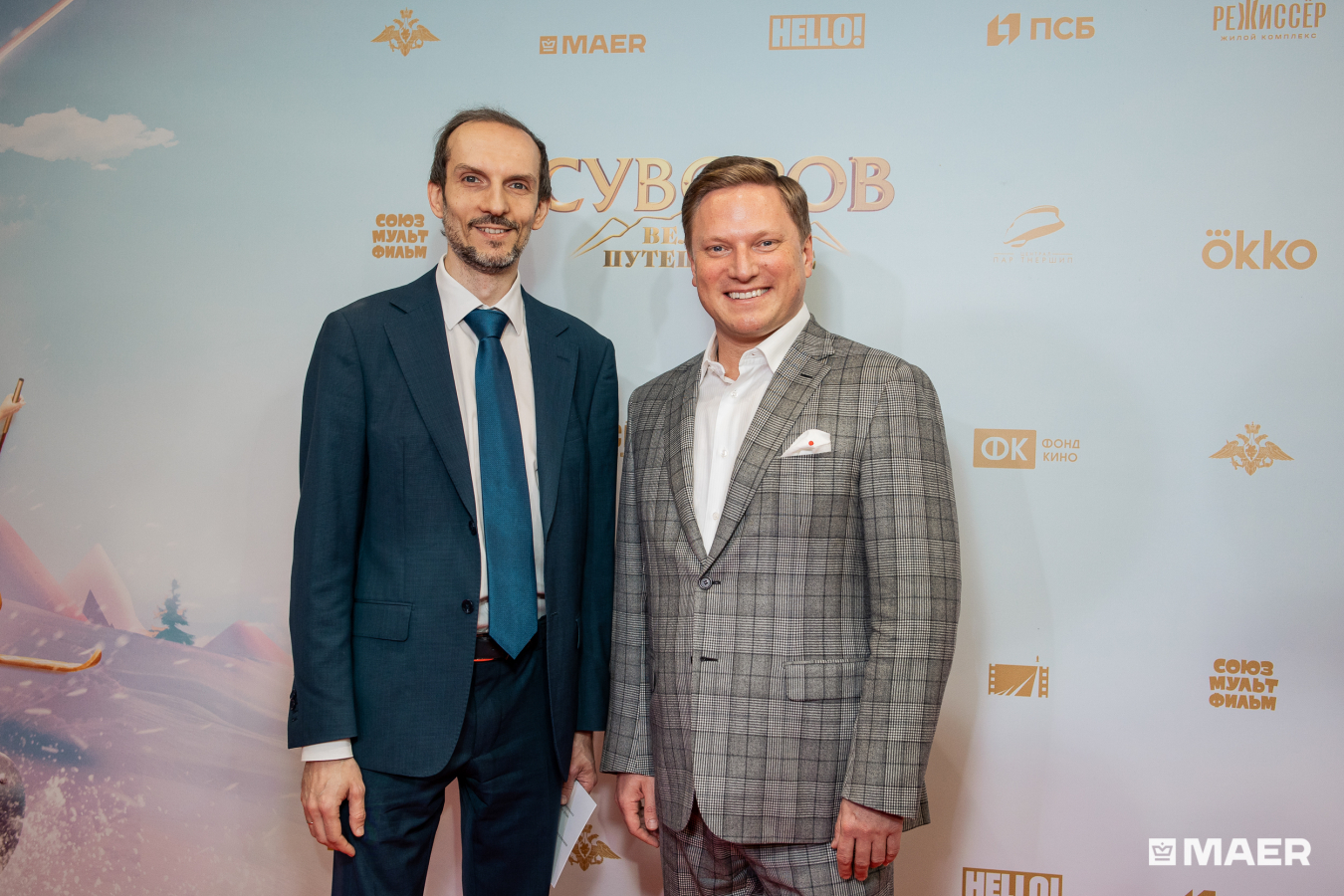 Торжественная премьера мультфильма «Суворов: Великое путешествие» состоялась 25 апреля в московском кинотеатре «Октябрь». Об истории создания фильма рассказали председатель Совета директоров киностудии «Союзмультфильм» Юлиана Слащева, режиссёр-постановщик Борис Чертков и другие члены творческой группы. Вместе с ними новую работу «Союзмультфильма» представил партнёр фильма — генеральный директор медиахолдинга Maer Константин Майор.