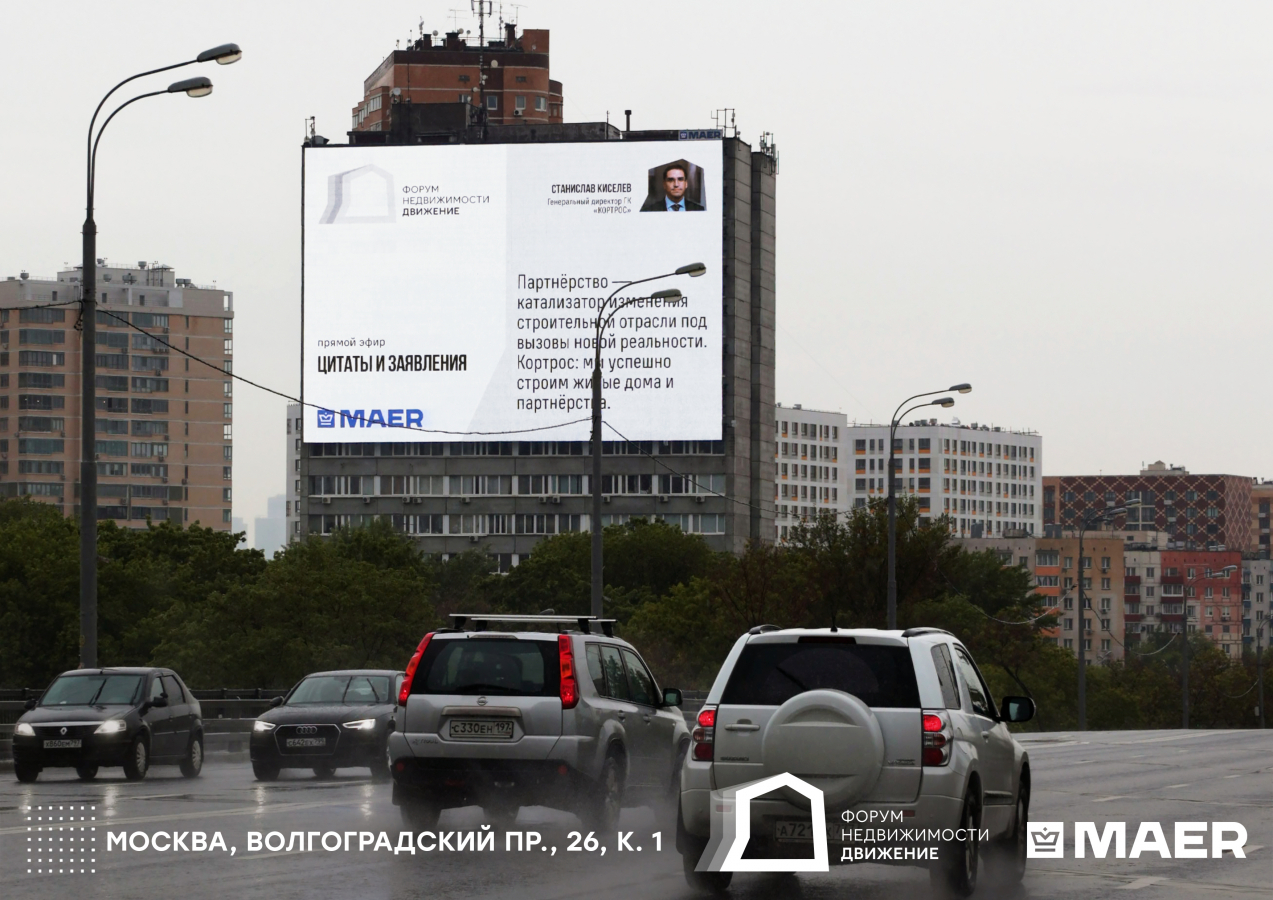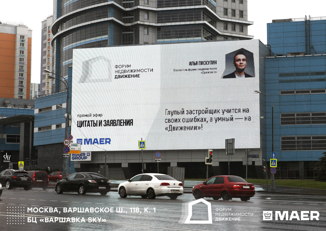 Мы впервые стали коммуникационным партнёром форума «Движение». Это накладывает определенную ответственность перед участниками рынка недвижимости. Рынок переживает не самые простые времена. Крупнейшие банки, крупнейшие строительные компании озвучили важнейшие для отрасли решения. На форуме мы применили уникальную технологичную, с помощью которой в различных городах России на медиафасадах транслировались главные цитаты из выступлений спикеров форума. Этим проектом мы хотели объединить регионы страны в одну команду для решения важнейших задач. Мы видим, что вместе со своей страной в ближайшие годы нам предстоит перевернуть страницу истории и вывести страну на новый уровень развития, где скорость принятия решений будет играть очень важную роль.