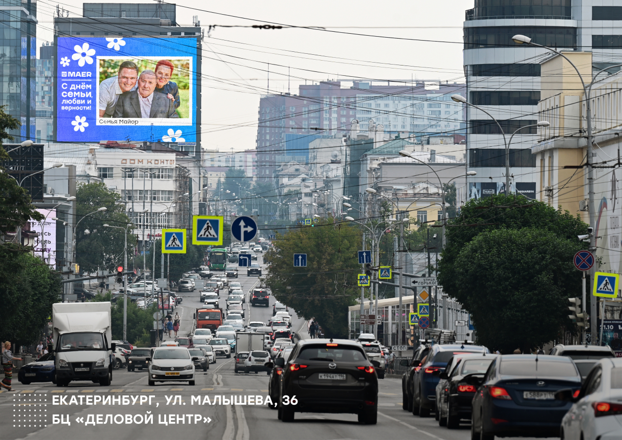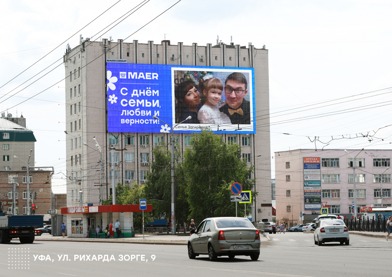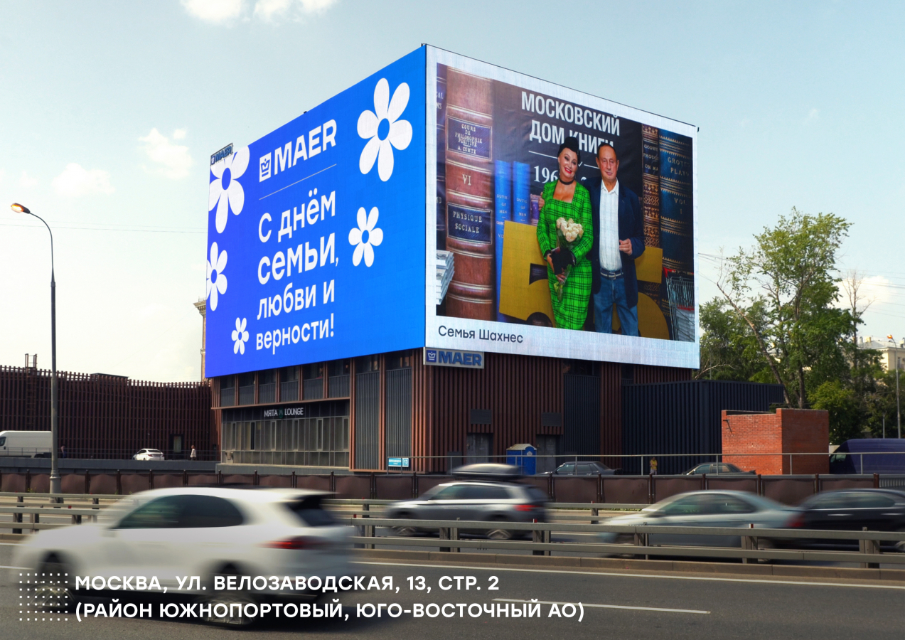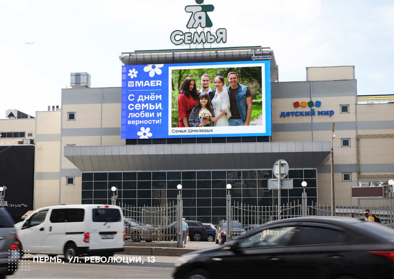 Поздравления с Днём семьи, любви и верности появились на медиафасадах в ключевых регионах страны. Масштабную кампанию запустил медиахолдинг Maer в ответ на «пропаганду гендерной повестки Запада». C 6 по 8 июля крупноформатные цифровые экраны транслировали семейные фотографии друзей холдинга. Об этом Sostav рассказали представители оператора цифровой наружной рекламы.