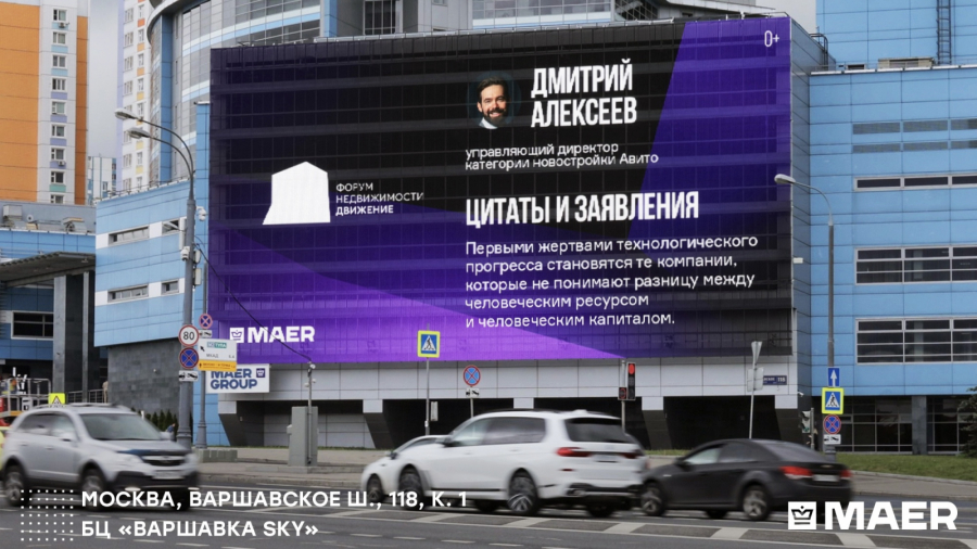 В Сочи завершился ежегодный форум недвижимости «Движение». Он показал, что строительная отрасль «набирается сил и стоит на пороге возрождения». О непростой ситуации на рынке говорят цитаты спикеров форума, которые в день открытия появились на медиафасадах коммуникационного партнёра мероприятия — медиахолдинга Maer. Об этом Sostav рассказали представители оператора цифровой наружной рекламы.