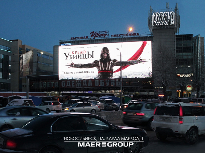 В декабре 2016 года федеральный оператор имиджевой рекламы Maer Group запустил в третьем по численности населения городе России современный цифровой носитель, занимающий весь фасад здания, выходящий к станции метро «Площадь Маркса». Общая площадь медиафасада составляет 460 кв. м.