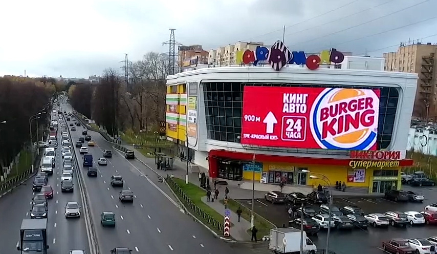 За счет удачного месторасположения медиафасада и крупного формата — рекламное сообщение воздействует не только на жителей Красногорска, но и городов-спутников.