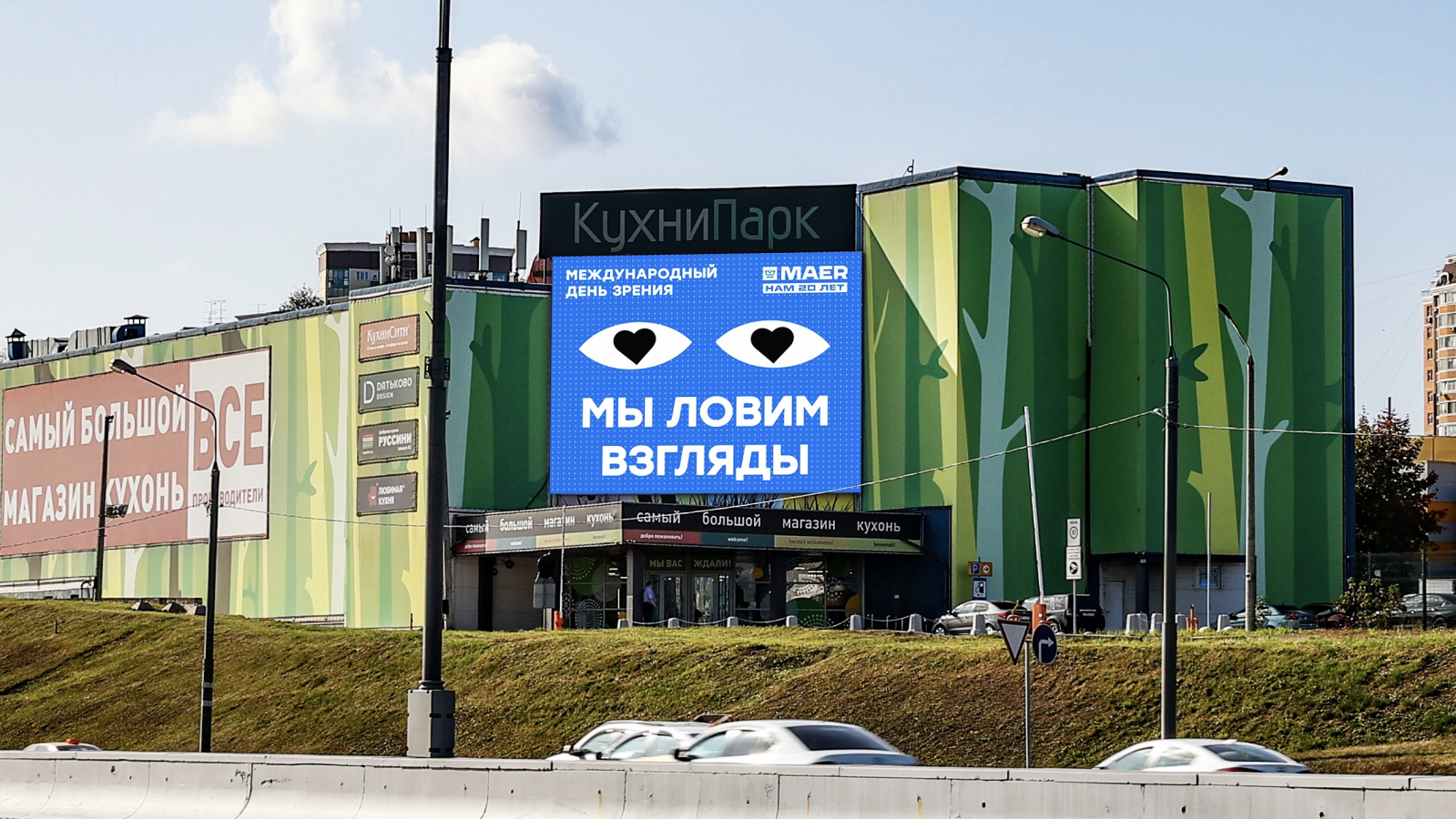 Экран размещён на здании специализированного торгового центра «КухниПарк» и оснащён передовыми разработками: после подключения все клиенты получают доступ ко всем технологическим решениям Maer. Цель рекламной конструкции ― сформировать спрос и предложение, чтобы продать товар или услугу. Новая локация предоставляет все необходимые условия для её достижения: масштабный экран расположен на возвышении на первой линии МКАД, что позволяет увидеть информацию, размещённую на носителе, на расстоянии более 1 км, подчёркивает Maer. По подсчётам экспертов, OTS новой локации ― свыше 672 тыс. взглядов в сутки.