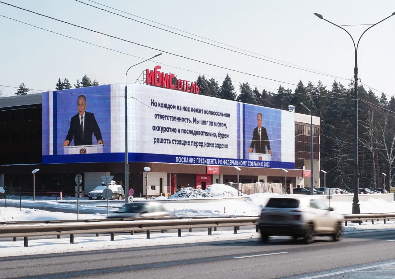 21 февраля президент РФ Владимир Путин обратился с посланием к Федеральному собранию. Российские СМИ разобрали выступление президента на цитаты, а самые яркие были показаны на центральных улицах российских городов. Их транслировал оператор цифровой наружной рекламы