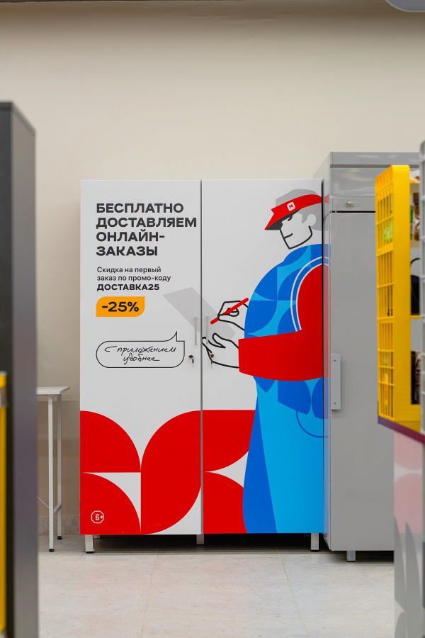 Дизайн торговых точек разработан «Студией Артемия Лебедева». Интерьеры получили новый визуальный язык, фирменный шрифт и навигацию, которая помогает покупателям ориентироваться в торговом зале.