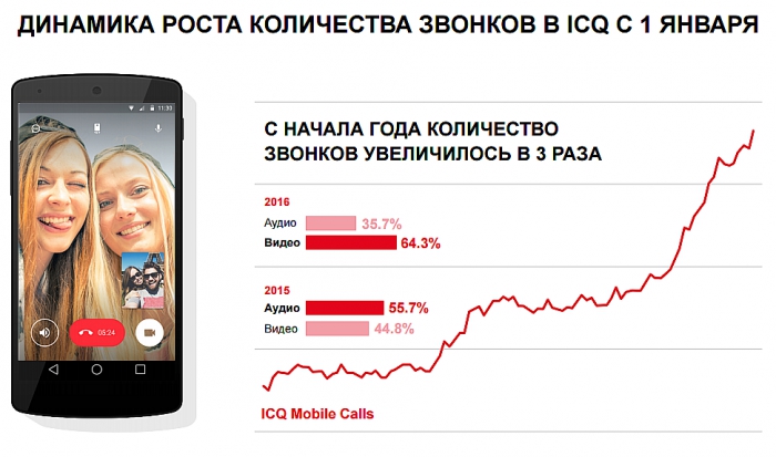 Бесплатное приложение Maps.me за год выросло более чем в 6 раз (более 40 млн.), в ICQ - трехкратный рост мобильных звонков с начала года.