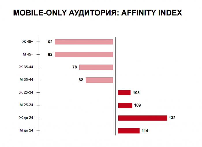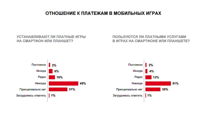 Потенциал роста мобайла в России остается высоким: по данным Mail.Ru Group, треть пользователей хотя бы время от времени продолжают пользоваться обычными мобильными телефонами (не смартфонами), для выхода в интернет со смартфона чаще используют мобильный интернет, а не wi-fi, и предпочитают устанавливать приложения самостоятельно (69%).
