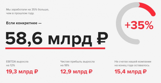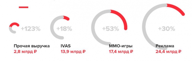 ММО-игры принесли Mail.Ru Group 17,4 млрд рублей (+53%), IVAS (виртуальные подарки, игры в соцсетях) — почти 14 млрд рублей (+18%), прочая выручка — от доставки еды, онлайн-обучения и других проектов — удвоилась (+123%) и достигла 2,8 млрд рублей. Чистая прибыль компании выросла на 18% и составила 12,9 млрд рублей.