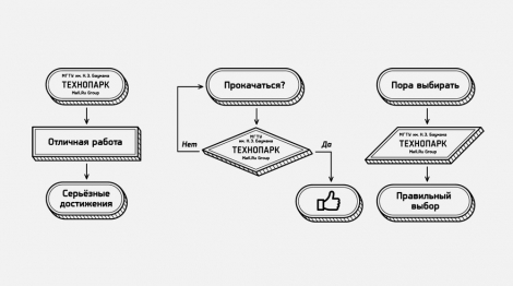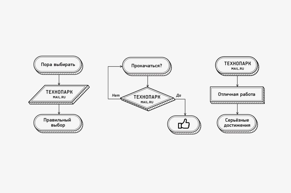 «Учеба в Технопарке позволяет студентам оптимизировать свою работу: делать путь к результату короче и находить верное решение с максимальной пользои? в процессе поиска, - прокомментировал Ярослав Докучаев, арт-директор отдела дизайна Mail.Ru Group. - Участие в проекте становится для них своеобразным переключателем. Эти идеи мы выразили через понятную каждому разработчику метафору алгоритма».