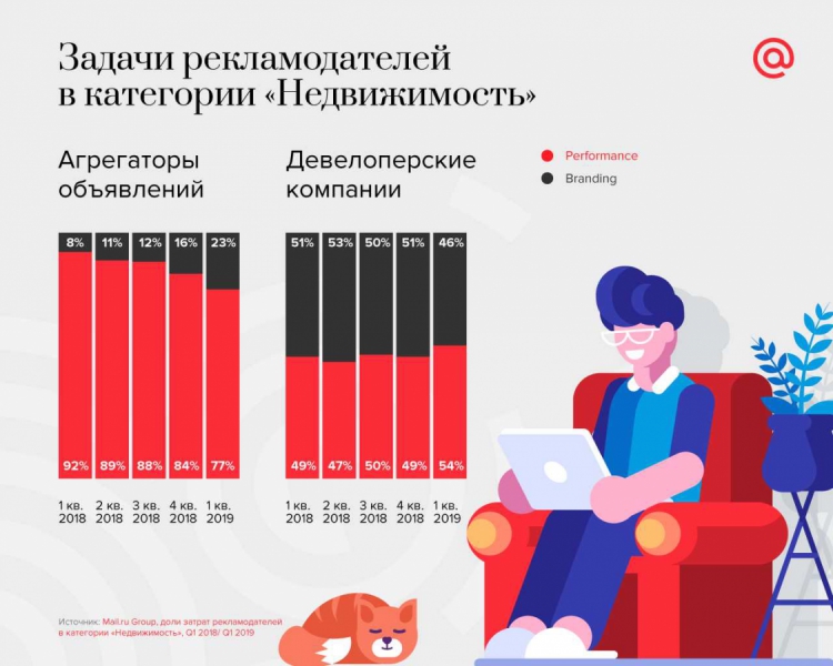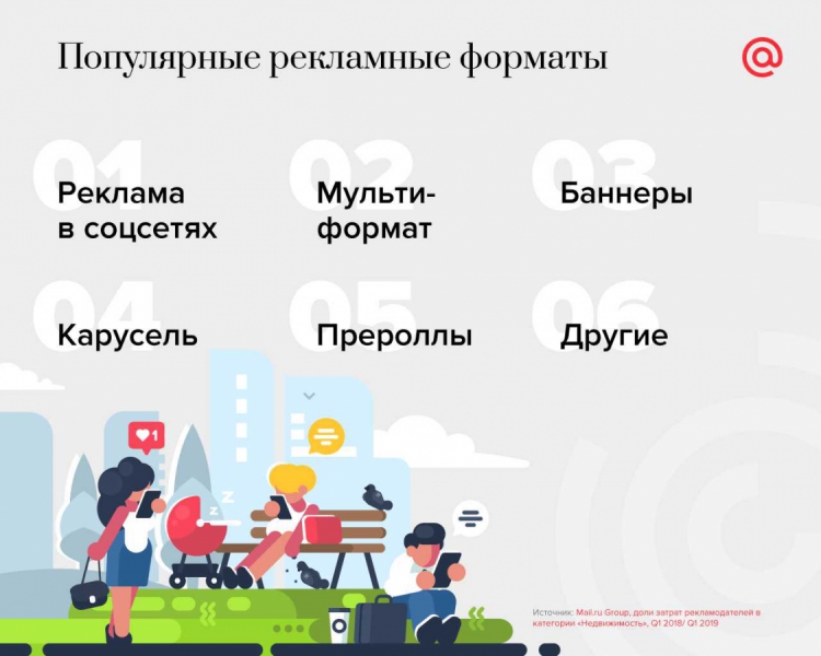 Главным трендом интернет-продвижения недвижимости в этом году стало использование рекламных объявлений в лентах и группах в социальных сетях. Как показывает статистика Mail.ru, за первый квартал 2019 года сайты-агрегаторы стали тратить на этот канал связи с потенциальными покупателями в три раза больше средств по сравнению с аналогичным периодом прошлого года.