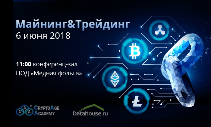 06 июня 2018 года Академия CryptoAge и отраслевая платформа CryptoClubCom приглашает своих друзей и выпускников, активных майнеров и всех, кто интересуется увеличением дохода, инвестициями, торговлей и прибыльными стратегиями на рынках криптовалют, на весеннюю конференцию «Майнинг&Трейдинг», которая пройдет в конференц-зале ЦОД «Медная фольга».