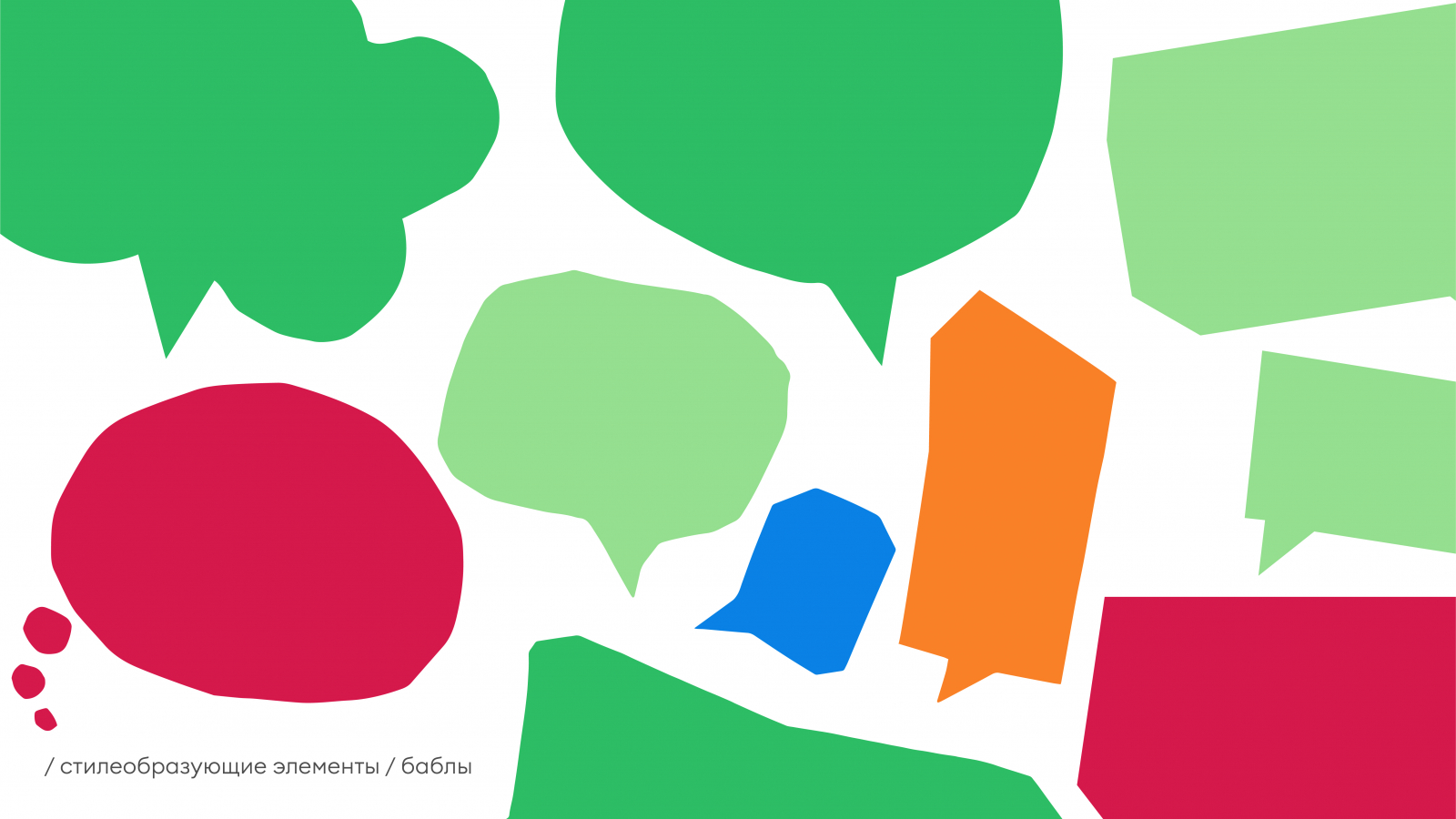 Формы, как и в маркетинговом бренде, изображены нарочито неровно, в аппликационной манере. Чтобы передать ощущение крафтовости, рукотворности и заботы, мы вырезали баблы случайных форм из бумаги, а затем отсканировали их и использовали в айдентике.