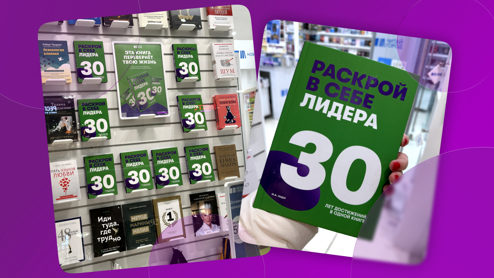Автор книги «Раскрой в себе лидера» — М.Ф. Лидер — вымышленное лицо, инициалы которого намекают на «МегаФон». Издание похоже на классические книги об успехе: громкое название, яркая обложка, цитаты на обороте. Вот только внутри нет текста. Заполнена лишь одна страница. Тем не менее креаторы уместили на ней всю информацию для тех, кто хочет раскрыть лидерский потенциал.