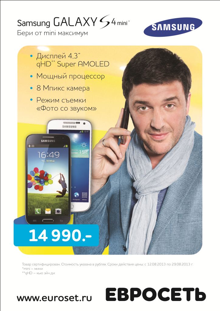 Популярный кино- и театральный актер Максим Виторган снялся в новой рекламной кампании сотового ритейлера «Евросеть». Ролик, появившийся в эфире федеральных каналов, направлен на продвижение смартфона Samsung Galaxy S4 mini.