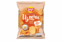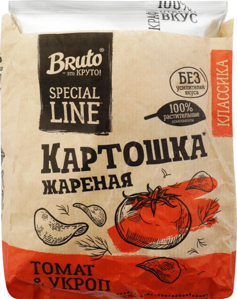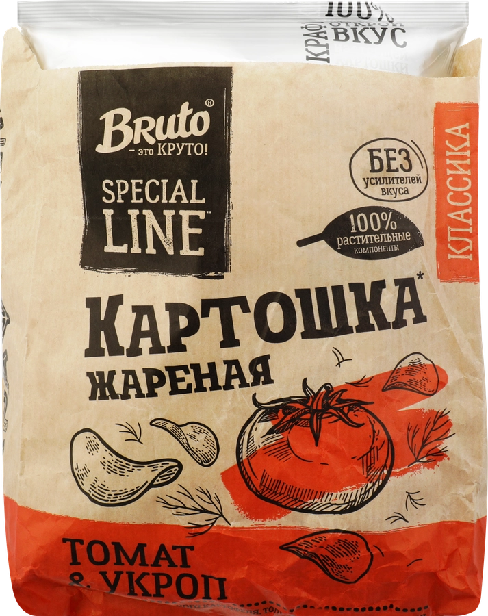 Внутренний пакет — металлизированный, помогает сохранять вкус и увеличивает срок годности. А внешний — из крафтовой бумаги без каких-либо покрытий, в него можно пересыпать чипсы, если нравится сидеть перед телевизором с пакетом вкусняшек.