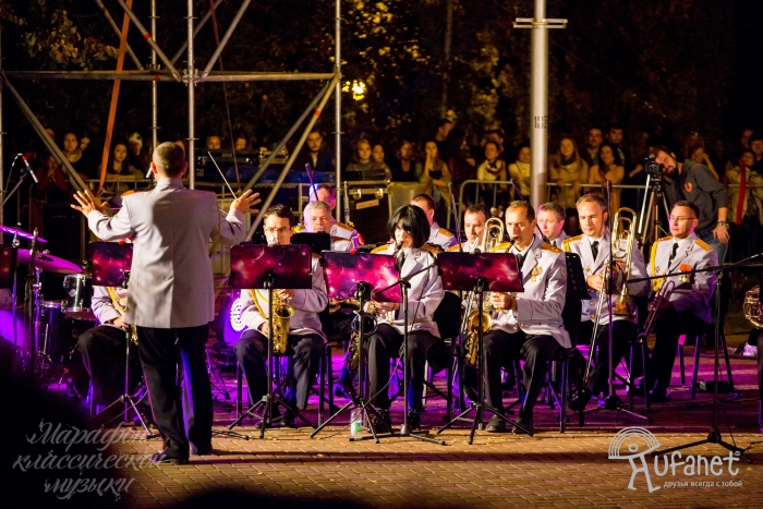 А завершился Марафон классической музыки традиционным ярким сюрпризом – сводный духовой оркестр Уфы, Казани и Оренбурга исполнил финальную композицию под залпы холодного огня, в свете которого горожане провожали лето.