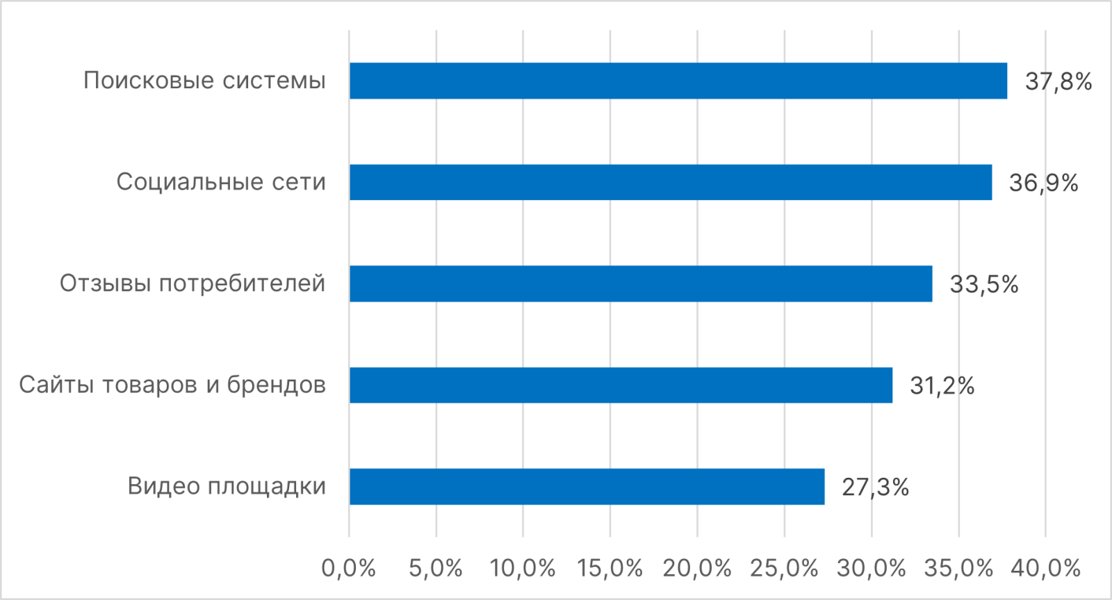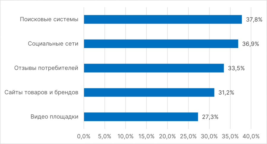 Возвращаясь к вопросу цифрового следа бренда в Китае, стоит отметить весомую роль китайских соцсетей в поиске информации о продукте. По информации DataReportal, 36,9% китайских интернет-пользователей отметили роль популярных социальных платформ как один из основных каналов поиска информации о бренде практически наравне с китайскими поисковыми системами, такими как Baidu. Причём, социальные сети оказались даже более важным каналом, чем сайты товаров и брендов.