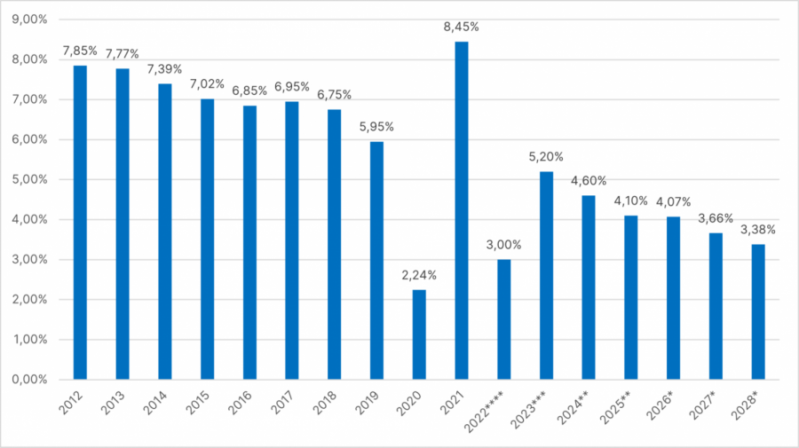 По прогнозам МВФ, несмотря на восстановление экономики после пандемии, в том числе за счёт эффекта низкой базы, долгосрочный тренд экономики Китая будет связан с постепенной понижательной динамикой.