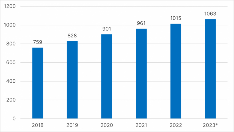 В контексте диджитализации не менее важно и то, что большинство интернет-пользователей в Китае — это и активные пользователи соцсетей. Так, по оценкам Statista, за последние 5 лет количество пользователей в социальных сетях КНР вырос на 40% и составил примерно 1,06 млрд человек в 2023 году.