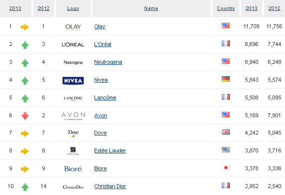 Несмотря на свои устойчивые позиции и довольно значимую разницу в стоимости с ближайшим конкурентом – L’Oreal – ценность Olay немного снизилась по сравнению с 2012 годом – на 47 млн долларов. При этом L’Oreal в стоимости прибавил 952 млн долларов, что помогло марке подняться на второй место. Стоимость французского косметического бренда составила 8,696 млрд долларов.