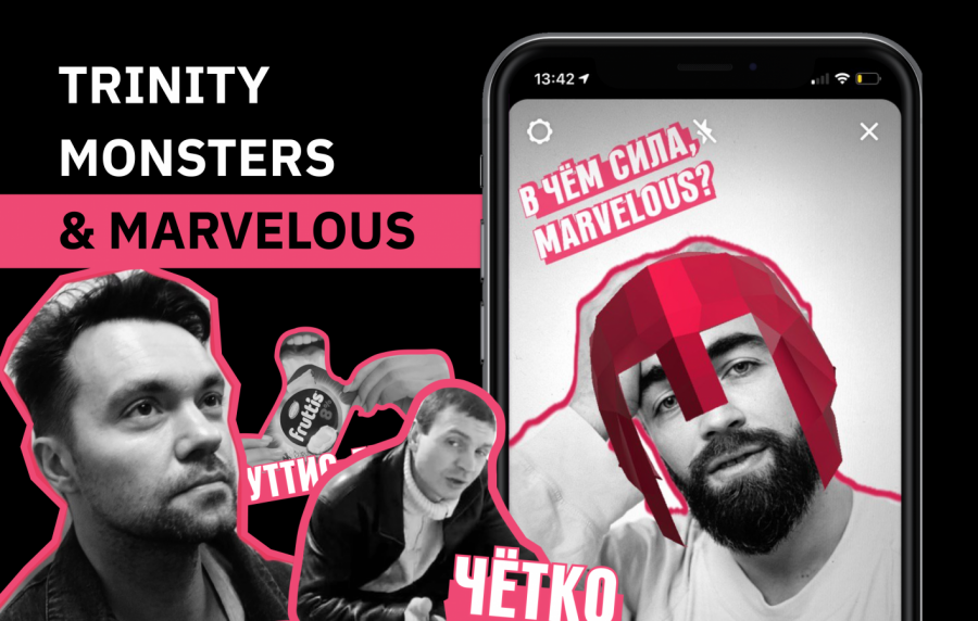 Marvelous Артем Синявский и Мик Вайсман, CEO Trinity Monsters. Задание взяло на себя Trinity. Запрос звучал следующим образом: «Сделайте такую Instagram-маску, чтобы клиент сразу понял, чем хороши Marvelous».