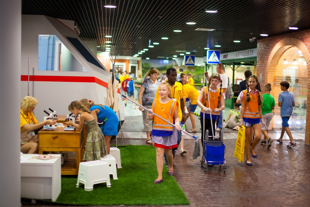 Особенность детского города - мастерские реально существующих компаний: «Сбербанк», «Азбука Вкуса», «Татнефть», «Шоколадница», Splat, Henderson и др. Компании становятся проводниками и главными ориентирами для детей при первом знакомстве со взрослой профессией в игровой форме. Для представителей мастерских – это оригинальный способ подтвердить на деле социально-ответственный имидж, рассказать о главных ценностях компании, закрепить за собой положительный образ лидера.
