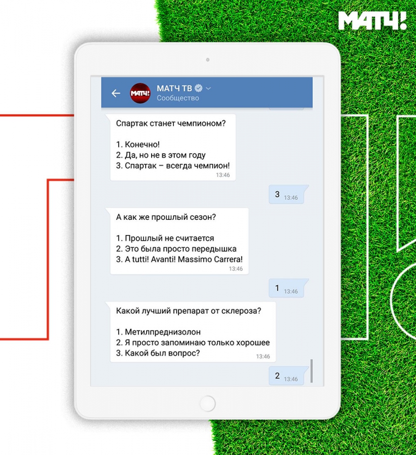 Я считаю, что «Футболиса» выполнила все поставленные перед ней задачи на 5 с плюсом. Судя по отзывам, потребность в боте на диджитал площадках «Матч ТВ» однозначно есть. Главная его функция — упростить жизнь людям. Умный помощник понимает с одного клика и сразу ведет по верному пути: и время начала матча подскажет, и ссылку на трансляцию выдаст моментально. Помимо этого, наш футбольный бот выгодно отличается от своих собратьев тонким чувством юмора.