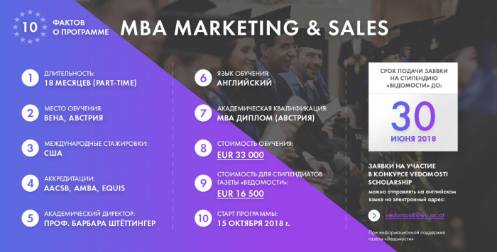 В 2018 году стипендии, выделяемые этой бизнес-школой для абитуриентов из России и других стран СНГ, а также Грузии, Украины и стран Балтии позволят снизить затраты на обучение по программе MBA Marketing & Sales: