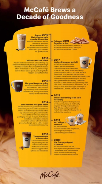 С момента запуска в США в 2009 году McCafé превратилось в крайне важный сегмент бизнеса McDonald's. Повышение качества кофе, удобство заказа и оплаты, а также позитивный опыт пребывания в кафе — всё это в свое время потребовало от McDonald's большого количества инвестиций, которые в свою очередь оправдались и принесли молодому бренду большой успех.