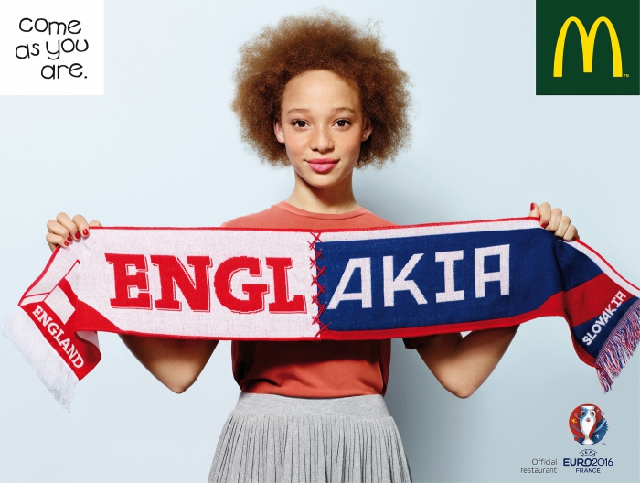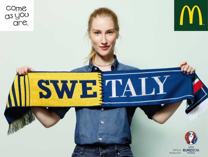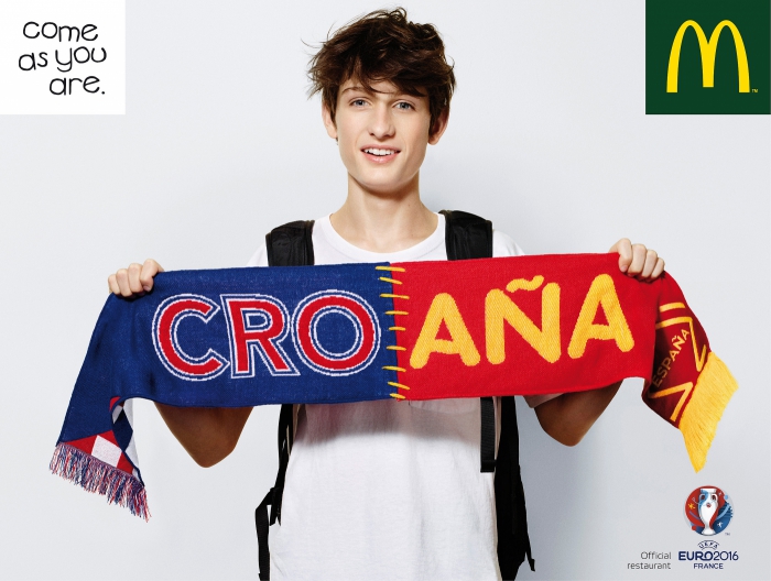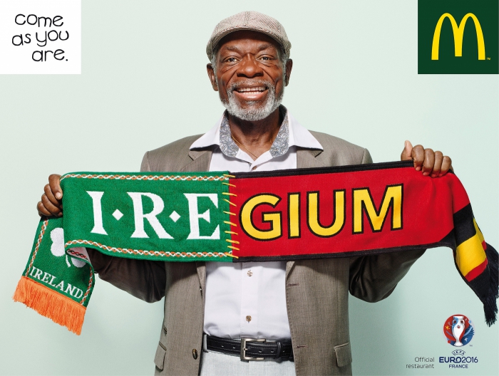 Сеть ресторанов быстрого питания McDonald's совместно с французским подразделением агентства BETC, разработали оutdoor-кампанию Come As You Are, в которой в прямом смысле объединили страны-участницы футбольного турнира.