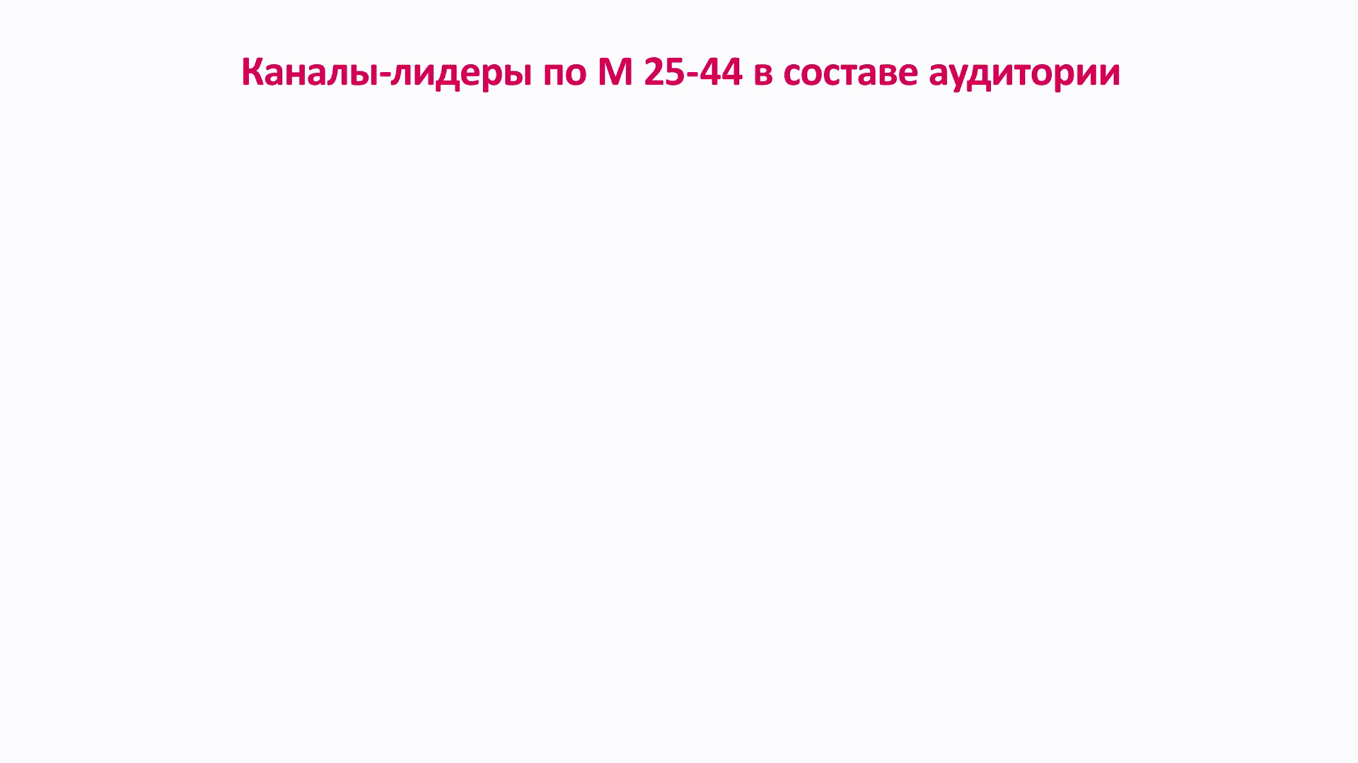 Если посмотреть на подборку каналов-лидеров по проценту женщин в возрасте 25−44 лет в составе аудитории каналов, то явный лидер с показателем в 42% - телеканал «Ю», позиционирующий себя как канал реалити-шоу для женщин. На втором месте (35%) оказался канал «МУЗ-ТВ». Также в число лидеров по проценту в составе аудитории молодых женщин также вошли «Пятница!», «ТВ-3» и «Мульт».
