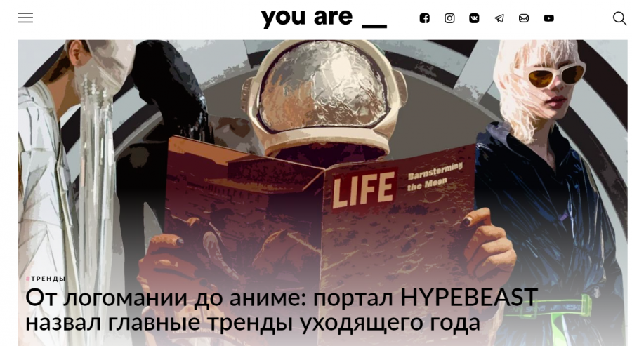 You Are — это «платформа для милленеалов, включающая в себя медиаресурс, event и pr-агентство». Агентство организует мероприятия занимается освещением событий, пиаром и сотрудничеством с мировыми и локальными брендами. «You Are знает, кто станет ролевой моделью среди миллениалов, и нацелен на то, чтобы представить новых героев многомиллионной аудитории, а также связать их с крупными брендами», — сообщается на сайте агентства.