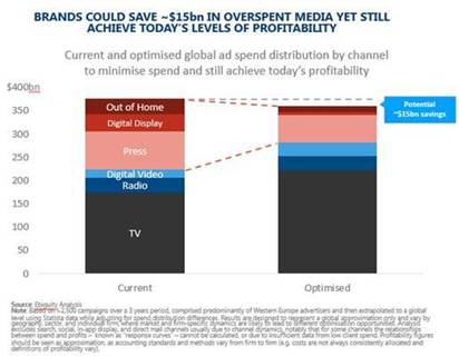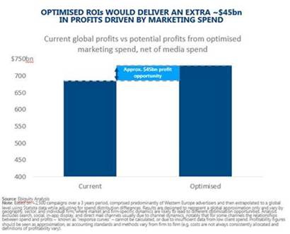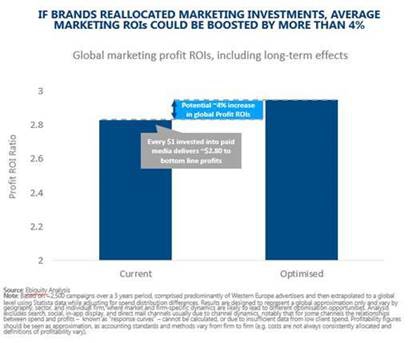За последние три года Ebiquity проанализировала 2500 рекламных кампаний по всему миру с совокупным бюджетом $ 375 млрд — это 76% глобального рекламного рынка. Медиааудитор пришел к выводу: если бы те же затраты были оптимизированы на основе оценки ROI (показатель окупаемости инвестиций) каждого медиаканала, то бренды получили бы $ 45 млрд дополнительной прибыли.
