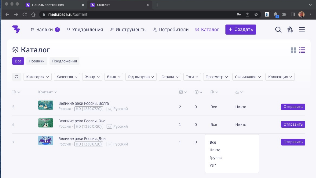 Также продавец и покупатель могут самостоятельно договориться о покупке эксклюзивных прав. Например, онлайн-кинотеатр покупает контент с эксклюзивными правами на распространение в интернете. После этого данный контент будет доступен в «Медиабазе» только для телеканалов, а представители OTT-платформ его в каталоге не увидят.