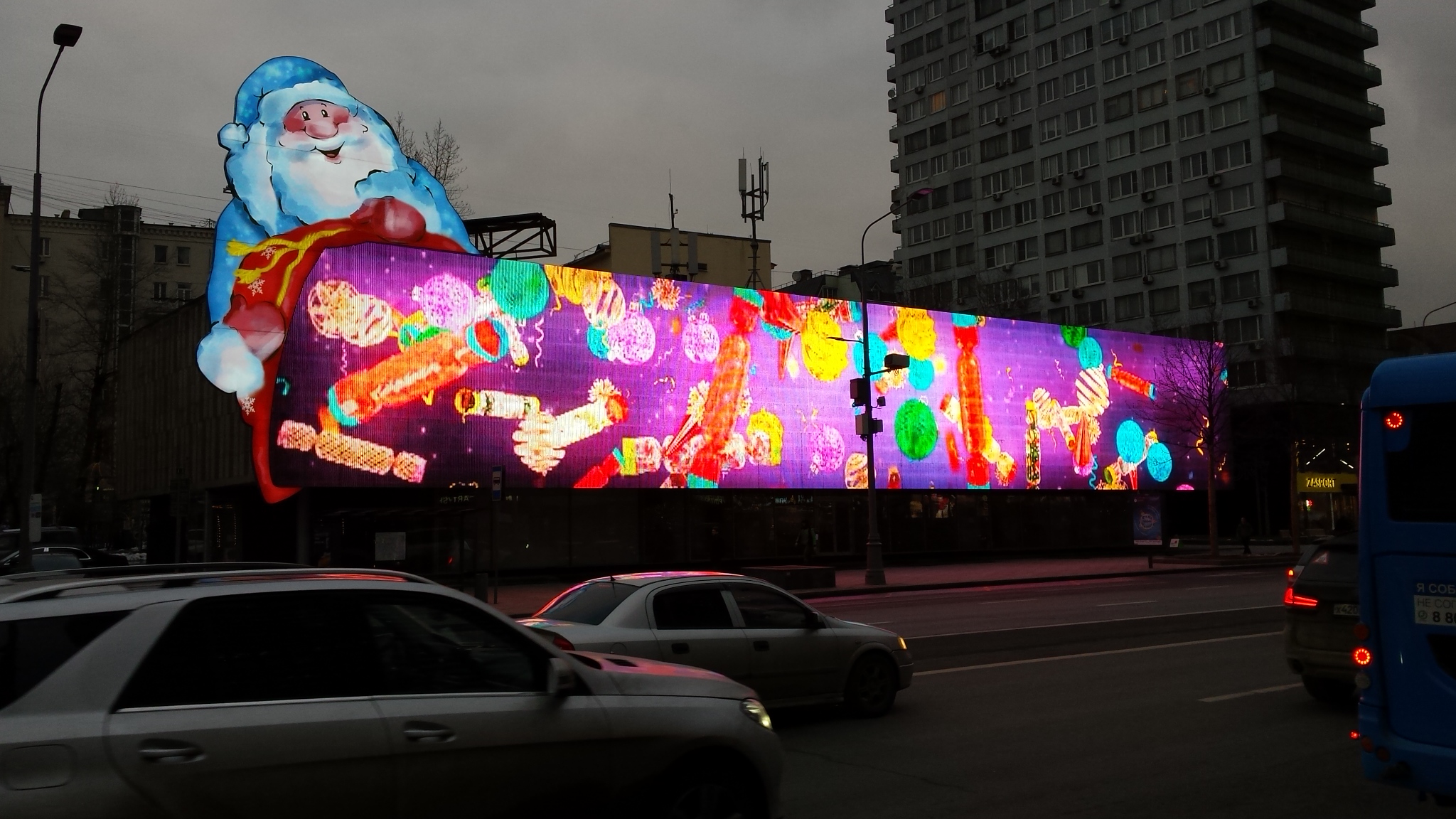 Цифровая рекламная конструкция превратится в поздравительную открытку с новогодним подарком, выглядывающим из огромного мешка Деда Мороза. Идея и реализация этого поздравления для жителей и гостей столицы к Новому 2018 году принадлежит коммуникационной группе LBL.