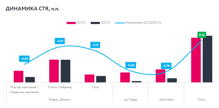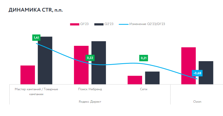 Однако для большинства отраслей в e-commerce именно второй квартал стал периодом снижения потребительского спроса, что подтверждают данные Ozon, финансовые результаты которого во втором квартале 2023 года слабее предыдущих пяти кварталов. Отсутствие крупных праздников, сезонных распродаж, подготовка к летнему дачному и отпускному сезону формируют тактику рекламодателей и рынок продвижения.