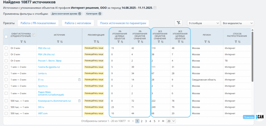 - выявлять источники негативных упоминаний компании /бренда /персоны;