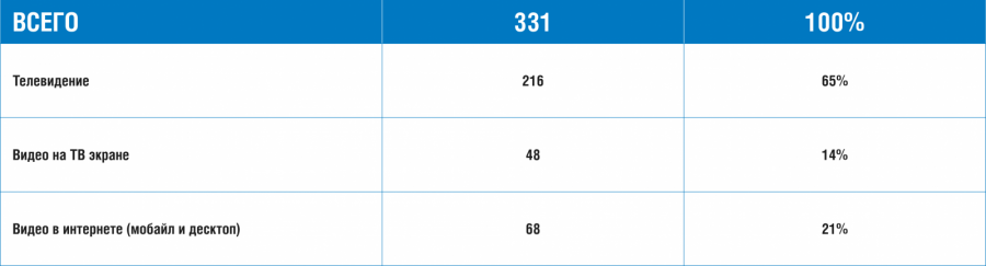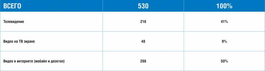 По данным Mediascope, в среднем каждый россиянин ежедневно тратит до 9 часов на взаимодействие с двумя крупнейшими медиасредами — ТВ и интернетом. Таким образом, при всем разнообразии медиаландшафта, основной объем времени пользователя приходится на ТВ и интернет.