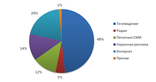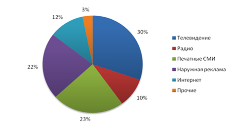 Рис. 3. Доли бюджетов отдельных сегментов рекламного рынка России