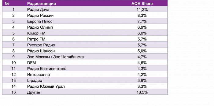 Данные: TNS Russia Radio Index – города, аудитория 12+