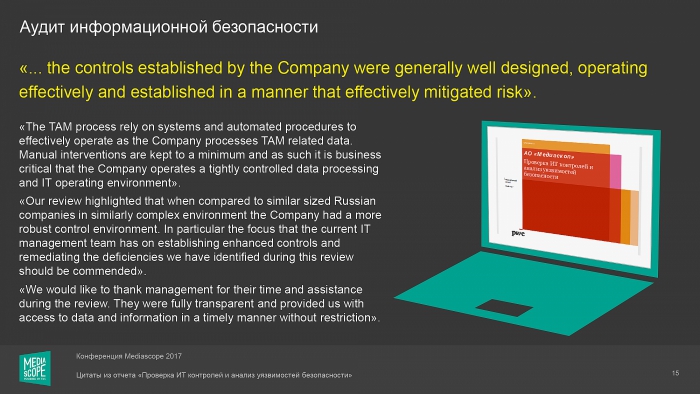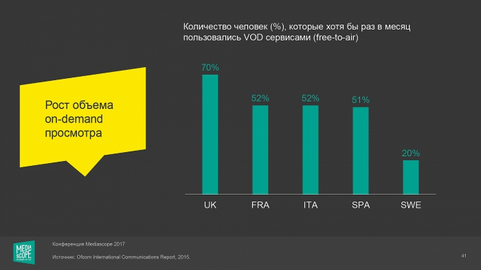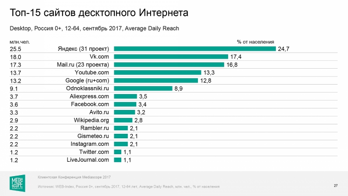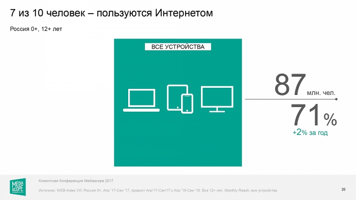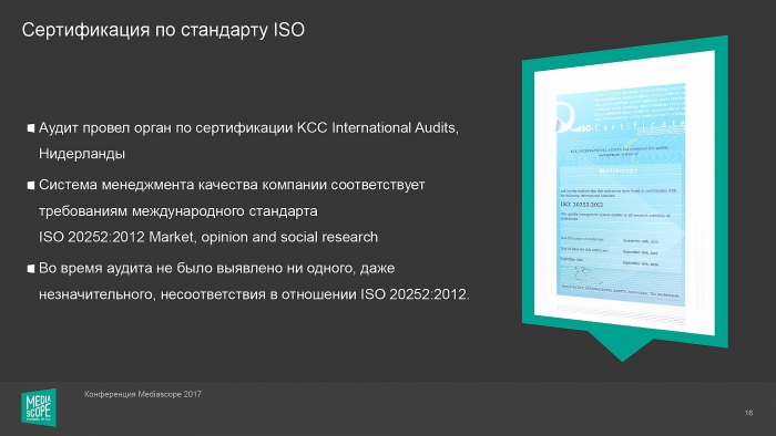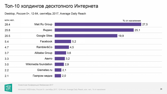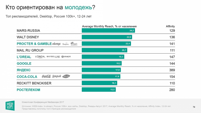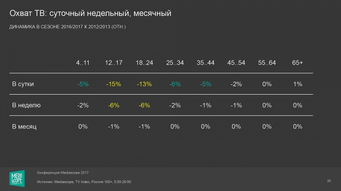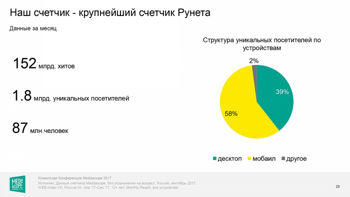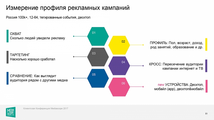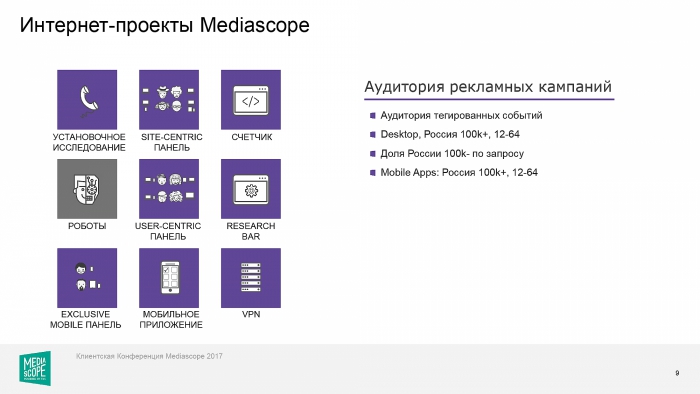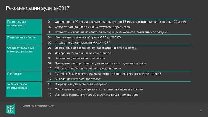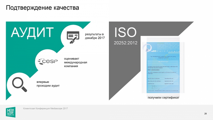 Компания Mediascope также анонсировала на конференции подготовку к измерению во всех медиа аудитории предстоящих в 2018 году спортивных событий и рекламы в них, в частности Чемпионата мира по футболу, который пройдет в России.