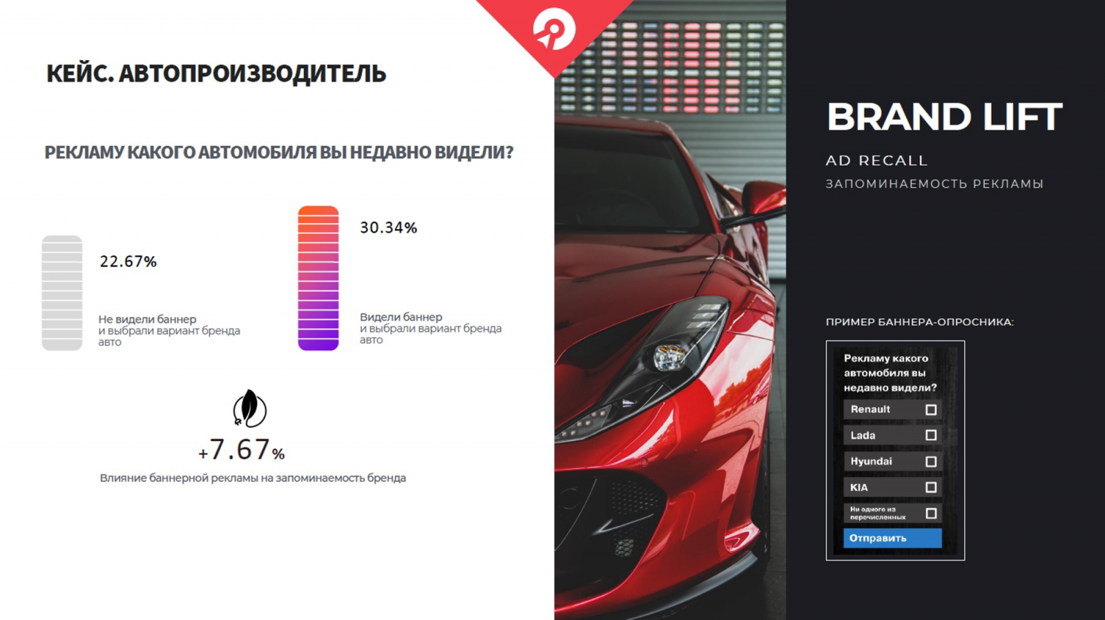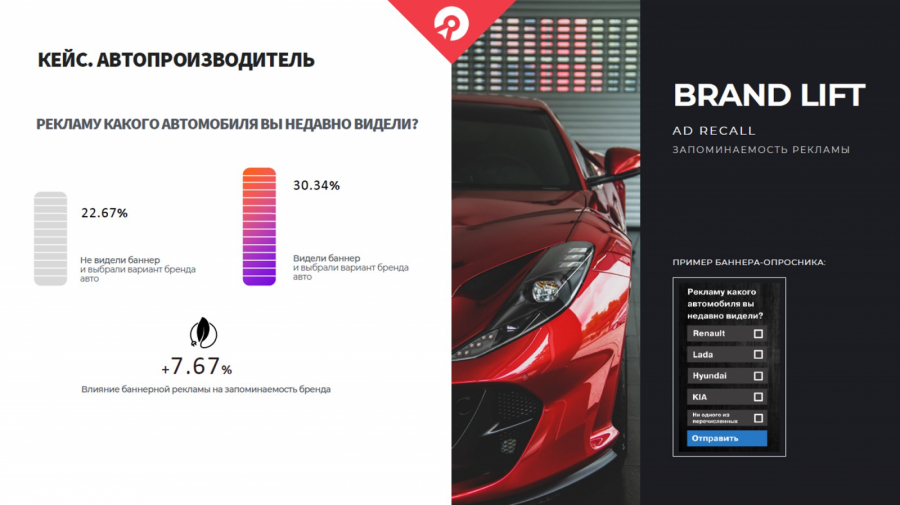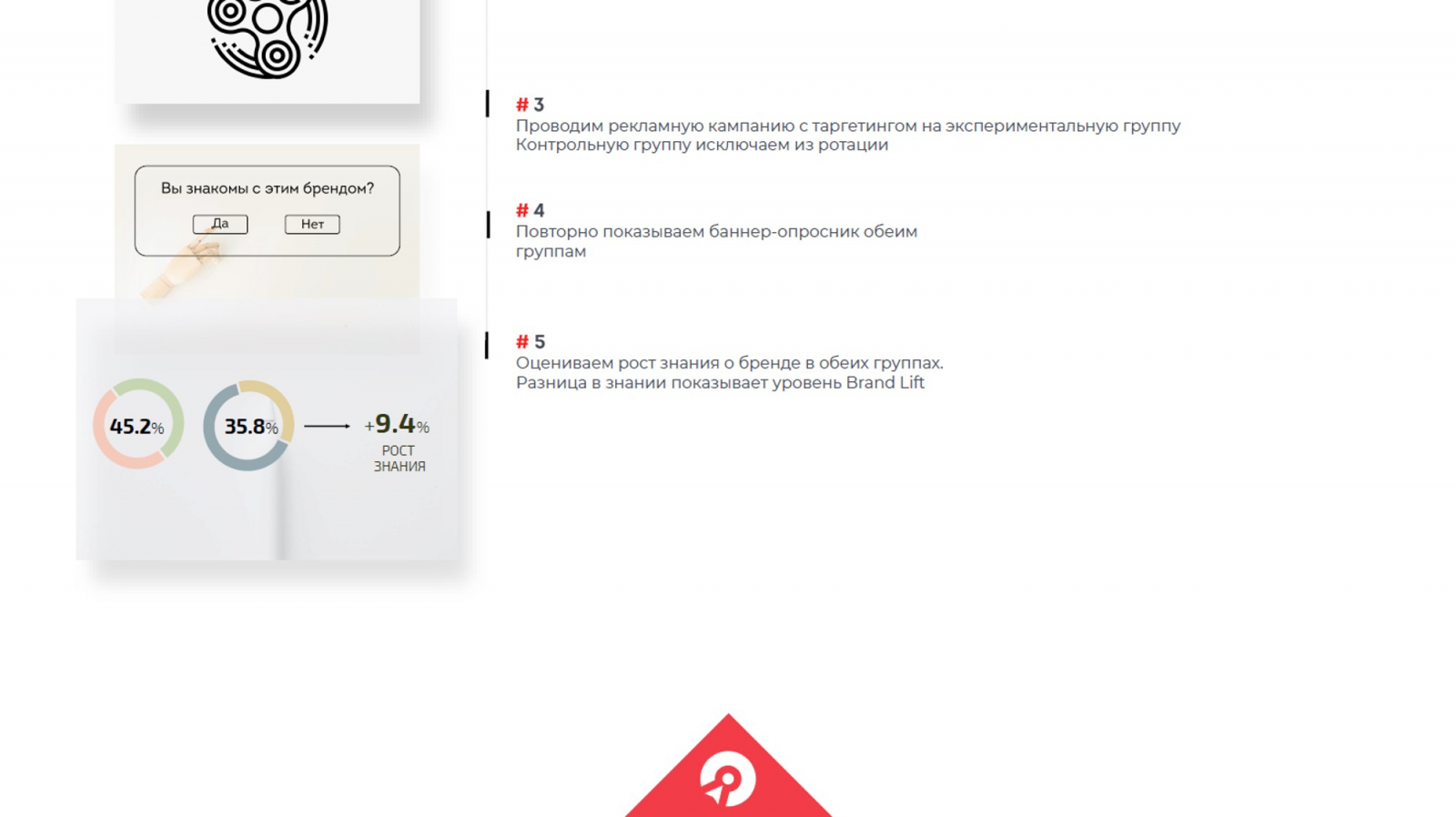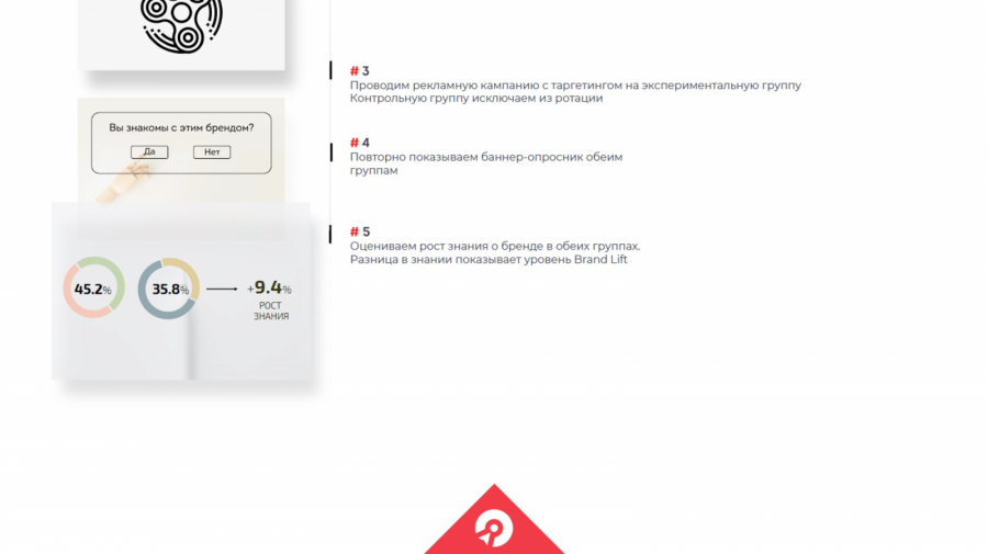 В таких случаях важно понимать конъюнктуру бренда, с которым мы работаем. К примеру, если это бренд, который активно ведет себя в публичном поле, он одновременно использует множество каналов. В этом случае контрольная группа, которую мы исключили из ротации, с большой долей вероятности могла попасть в ротацию других каналов и видеть рекламу. В таком случае прирост 7% — это хороший результат. Второй момент — нужно учитывать узнаваемость бренда при составлении опросов. Если бренд настолько популярен, что сложно встретить человека, который не знает его, результат подобных опросов будет стремиться к нулю. В таком случае важно правильно сформулировать запрос к аудитории и обратиться, например, к отдельным товарным категориям.