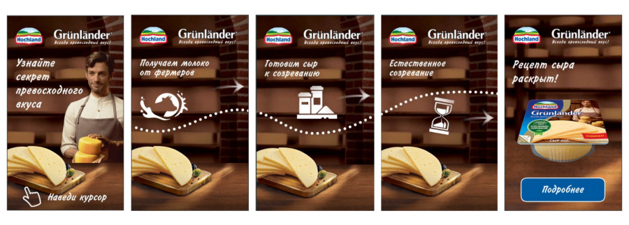 Одновременно с поиском новой аудитории осуществлялась работа с уже лояльными потребителями продуктов бренда Hochland. Благодаря установленному на сайте трекинг-коду MediaSniper система зафиксировала всех посетителей, которые заходили на сайт. Всех таких пользователей находили на просторах Сети и показывали им вышеупомянутые баннеры.