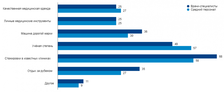 «Что подтверждает высокий профессиональный статус к глазах коллег?», доля согласившихся с утверждением, %