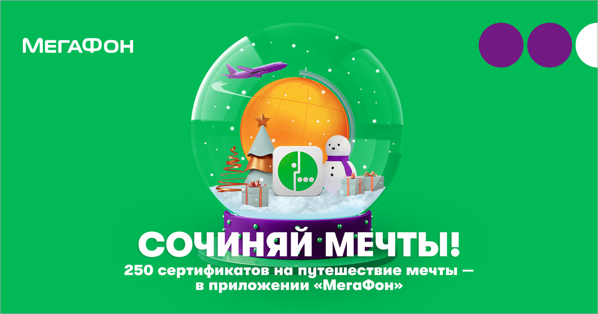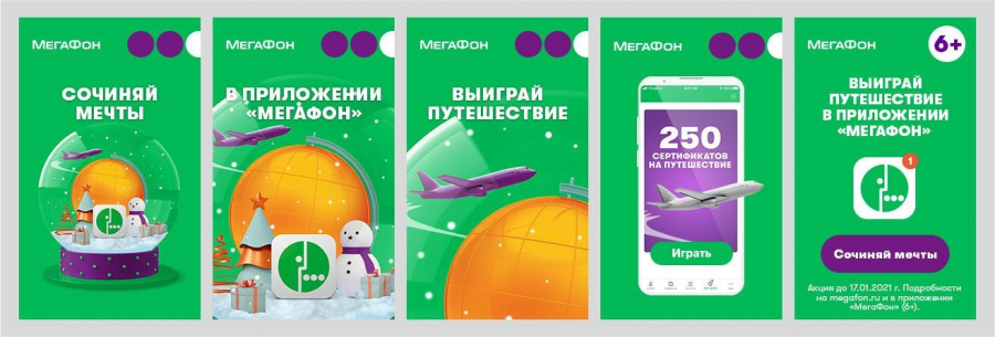 В поддержку новогоднего розыгрыша призов «Мегафон» запустил рекламную кампанию «Сочиняй мечты!» — в ее основу легли мечты людей о путешествиях, которые они загадывают в Новый год. Ролик представляет собой скринкаст бесконечной ленты мечтателей, в которой они постят представления об идеальном отдыхе: кто-то дома нетерпеливо примеряет гидрокостюм, кто-то, находясь на беговой дорожке в спортзале, представляет себя в центре Парижа, кто-то ловит дзен в оранжерее, мечтая оказаться в тропиках. С «МегаФоном» осуществить мечту о путешествии стало проще, играя каждый день в новогоднюю игру.