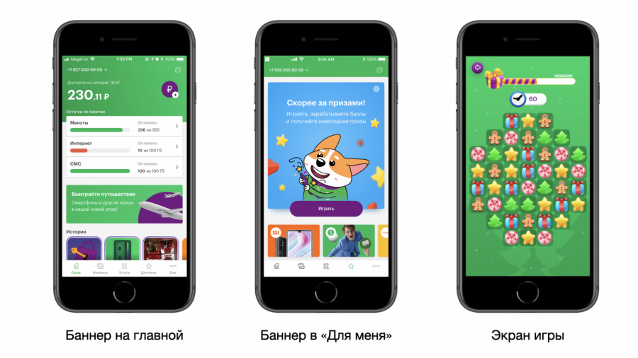 «МегаФон» давно использует быстрые игровые механики в собственном мобильном приложении для вовлечения и повышения лояльности абонентов (например, акция «Тряси смартфон», реклама которой стала вирусной, а тряска смартфона — привычным ритуалом), и 2020 год не стал для компании исключением. В течение года в разделе «Для меня» выходили различные мини-игры, пройдя которые можно было получить поощрительные призы от экосистемы оператора и его партнеров.