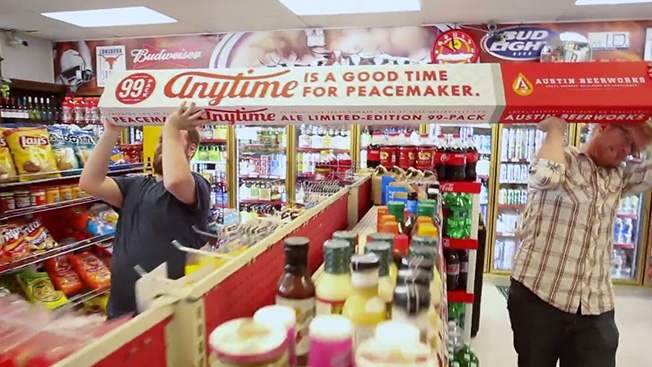 Пивовары завода Austin Beerworks создали мега-упаковку для своего пива с громким названием «Миротворец» (Peacemaker). Каждый желающий может купить упаковку с 99 банками пива в рамках маркетинговой акции «Любое время - подходящее время для Peacemaker» (Anytime is a good time for Peacemaker).