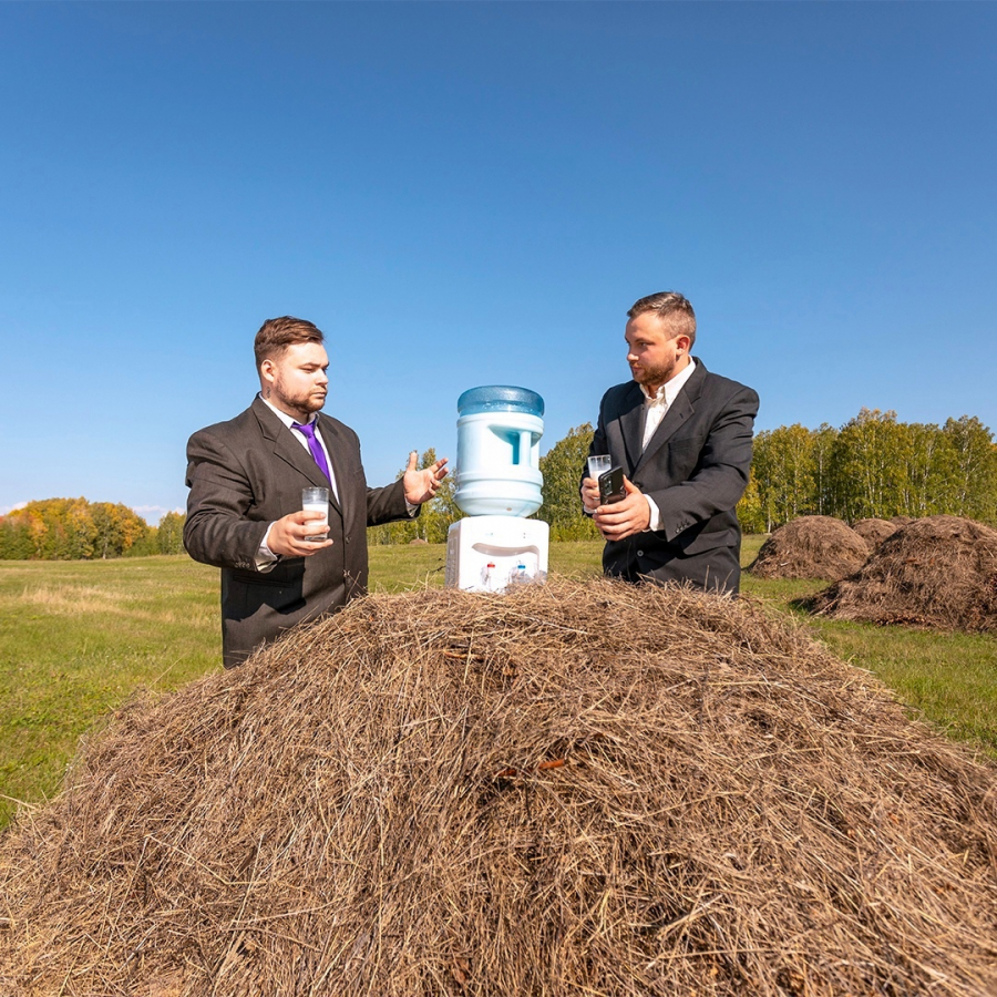 Обыгрывая мем, команда проекта сделала серию фотографий, отражающих реалии сотрудников корпораций. При этом она использовала не стандартные офисные помещения, а уникальные филиалы компании «Болото Inc».
