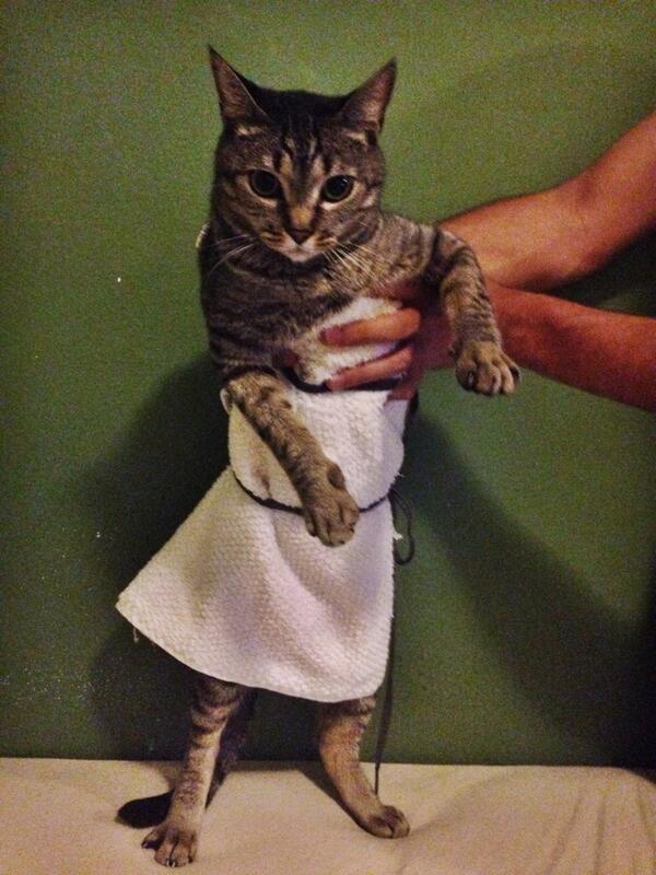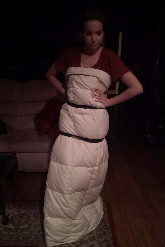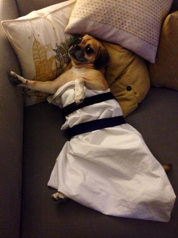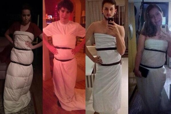 Пользователи Twitter и других соцсетей быстро оценили стиль Лоуренс. Как говорится, все гениальное – просто, и вот множество пользователей достали белые одеяла и черные ленты, чтобы повторить звездный образ. Причем наряжаются не только поклонники, но и их домашние питомцы.